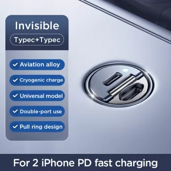 30W Dual Port USB-C Fast Car Charger with Pull Ring Design